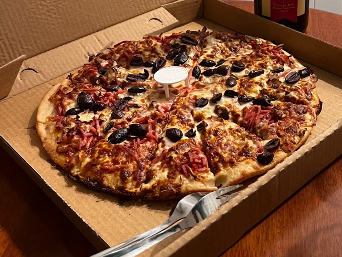 My partner and I came here accidentally a year ago as it was the only place still open to eat at 8.30pm on a road trip. It was the best accident of our lives. So hot, so fresh, so crispy, loaded to the eyeballs with meat. But somehow not too much meat?? Incredible value for money. We only eat gluten free and it was such a great base. So this year, on our yearly road trip we made a point of stopping for this pizza again. It’s absolutely still just as good. Not at all a fluke. We will come here every time we are in Lakes Entrance forever.