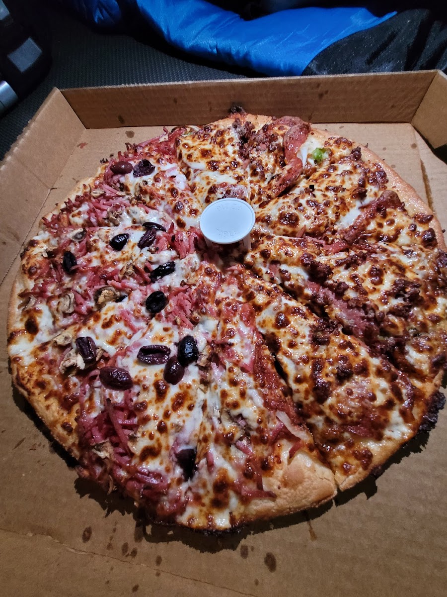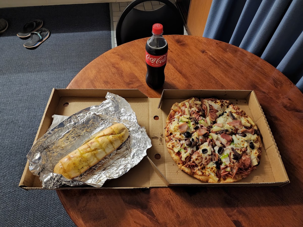 We had 3 pizzas delivered. The service was quicker than they anticipated and the young man who delivered was great. Cheerful and happy to deliver to the caravan park we were staying in. Pizzas were delicious! One meat one vegetarian with extra extra extra garlic and heaps of chilli! They did a great job - this is what was left (good for tomorrow!)