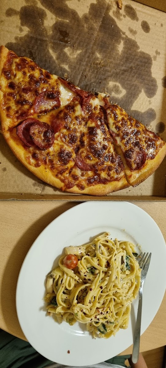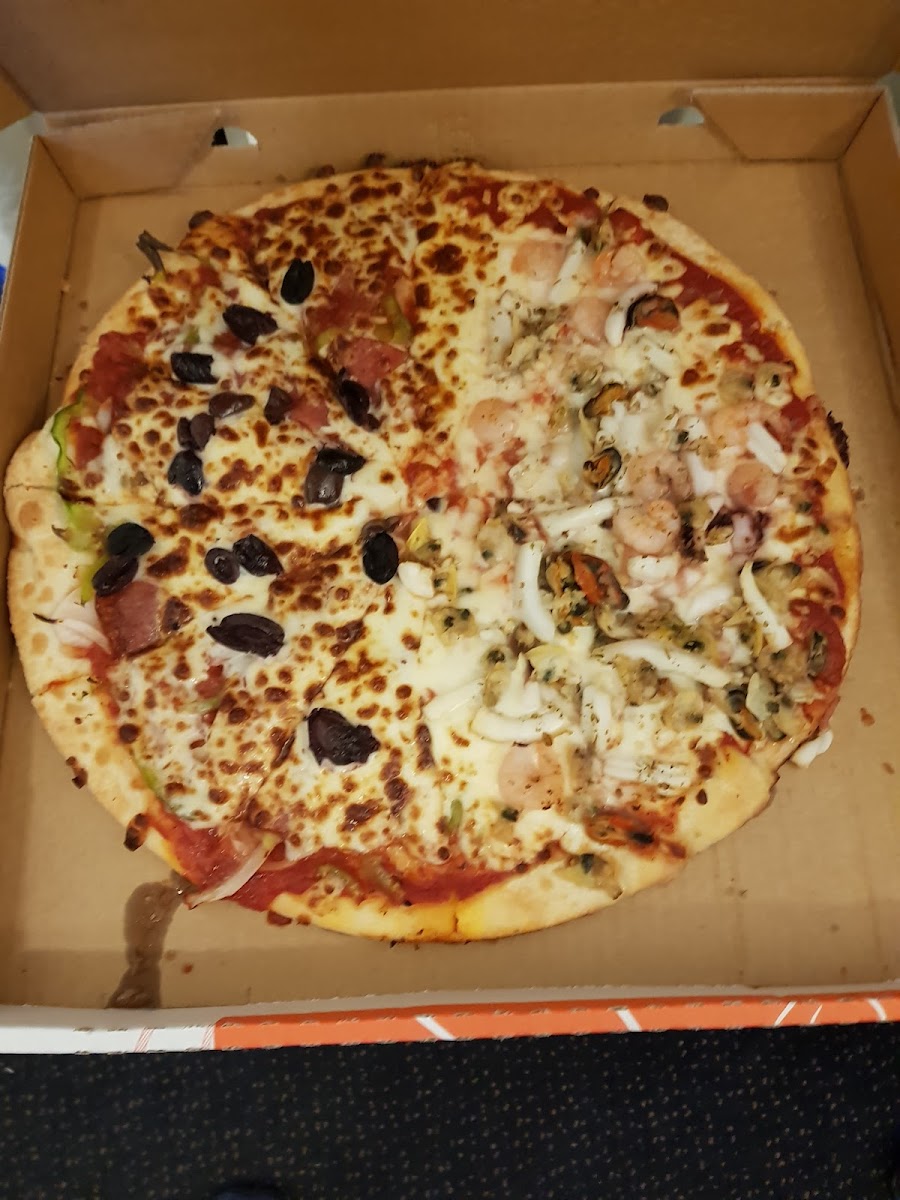 Had ‘The Lot’ pizza and it was very nice. Great taste, topping and sauce, could see and tasted seafoods on it too. The only thing was the staff were rather loud and rowdy, it was pretty noisy and rather off putting. But great pizza.